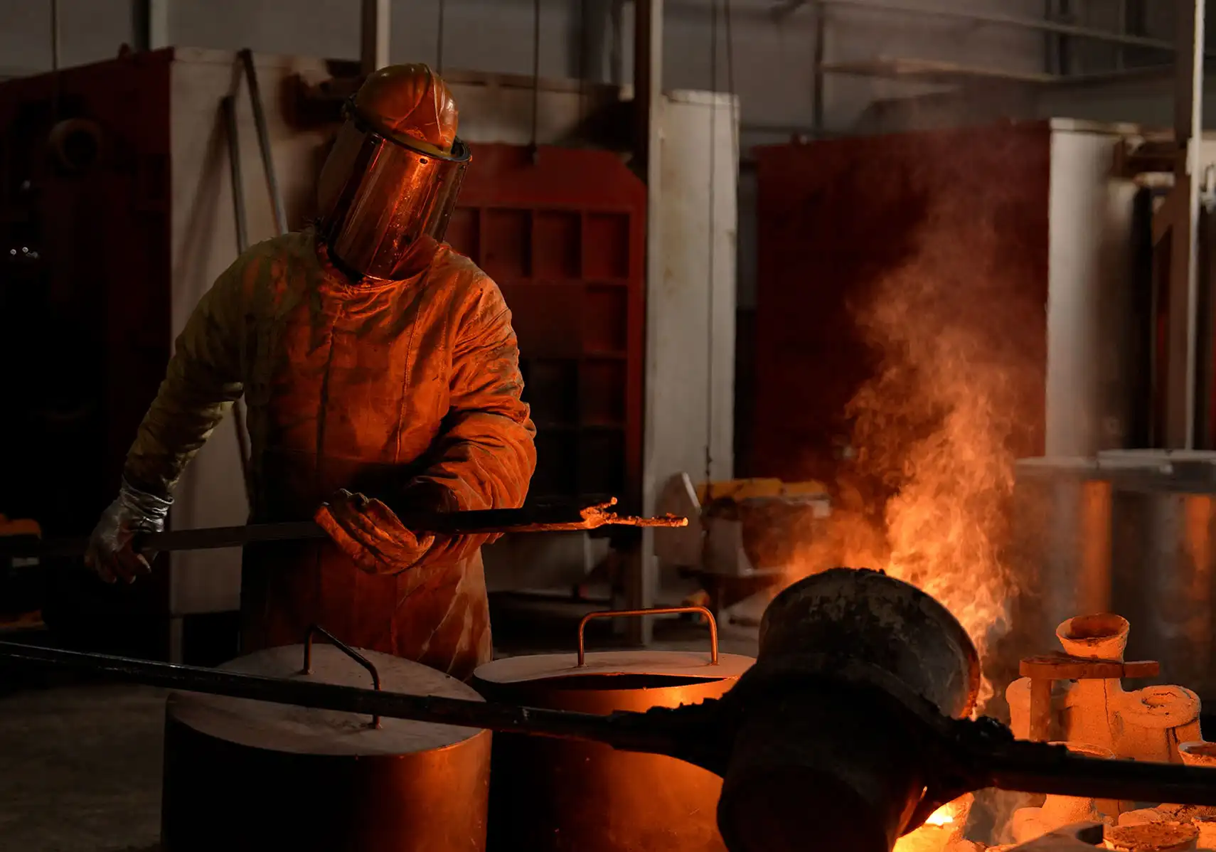 Üretilecek parçanın malzemesi, modern indüksiyon ocaklarımızda hassas sıcaklık kontrolü ile eritilir.